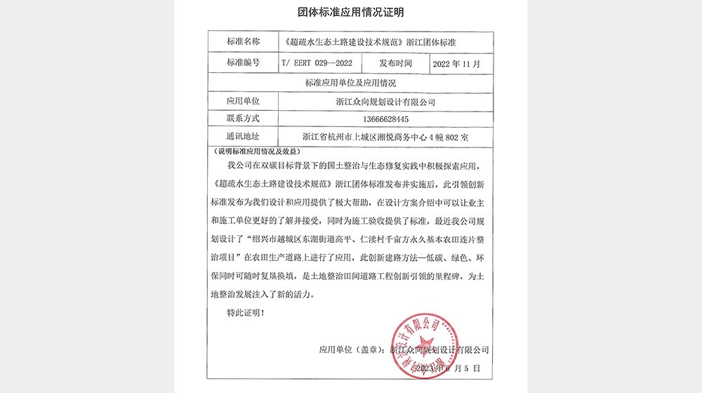 中国美术学院景物修建设计研究总院有限公司-标准应用证实